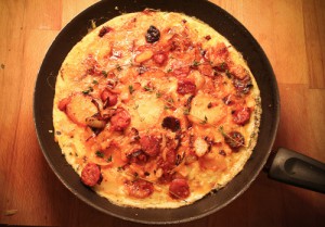 Tortilla mit Chorizo & Thymian, spanisch 1 Juni 2013 0 Wir sind uns durchaus bewusst, dass dies keine Original-Original-Tortilla ist.…